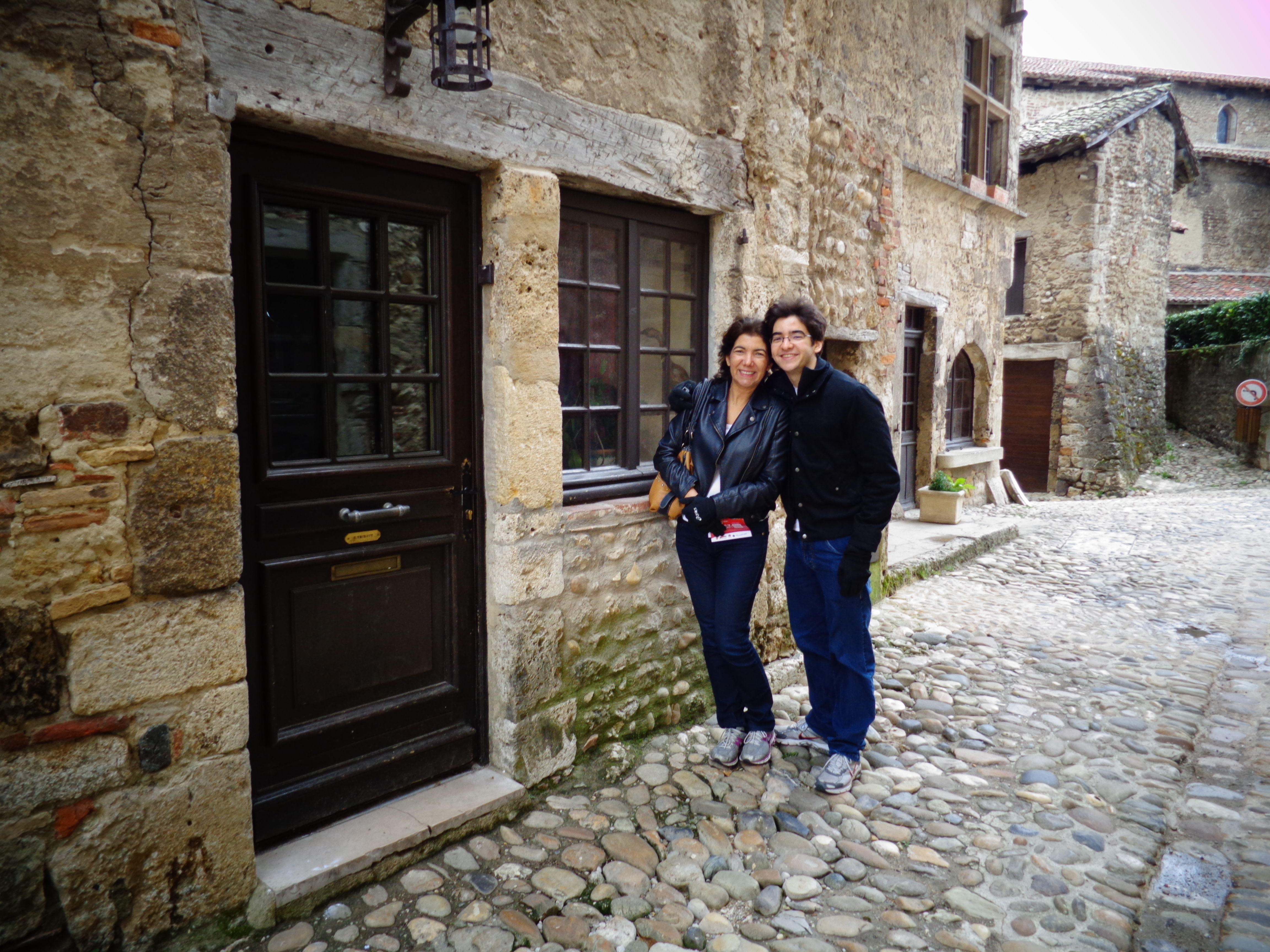 Já devidamente alimentados, fomos conhecer Pérouges, que não é grande, rapidinho dá para conhecer. Muito linda, a gente volta no tempo! Apesar do frio de gelar a alma e do vento de arrepiar os cabelos, andamos por toda a cidade! Quase não dá para acreditar que é real, parece filme! O canal France2, esta fazendo um concurso para eleger a cidade mais bonita da França, e a região do Rhône-Alpes está sendo representada por Pérouges, votamos nela!