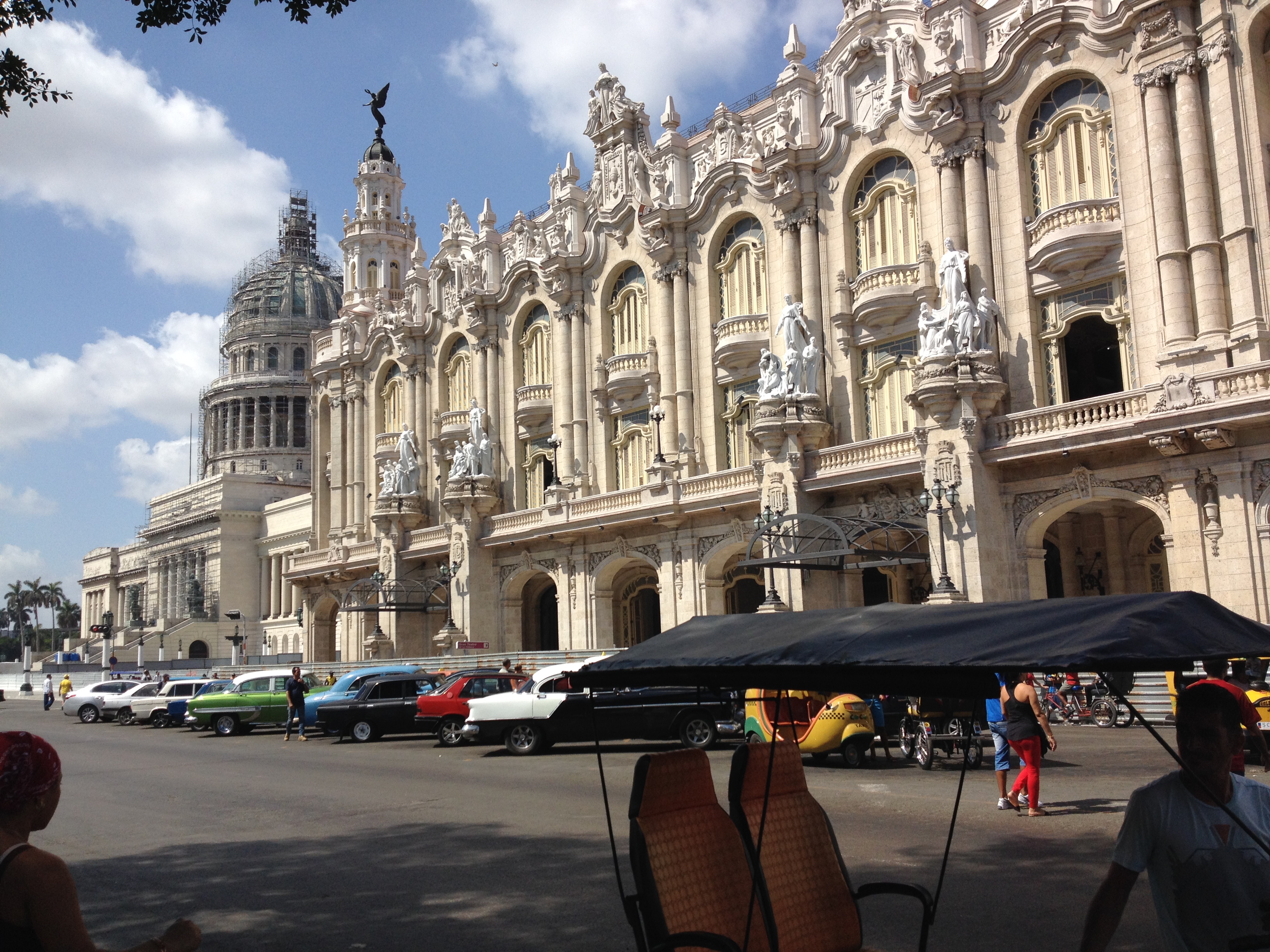 O que mais me marcou nesse passeio, foi o calor que sentimos, principalmente quando paramos na praça da revolução. Foi a nossa primeira parada, e depois de uma rápida olhada e algumas fotos, o único pensamento, era sair do calor e entrar no ônibus novamente. Na casa de Dona Cândida, onde estávamos hospedados, fizemos amizade com um casal de holandeses, e íamos trocando figurinhas das descobertas na cidade, e como eles não sabiam do T1, adoraram a dica. No dia seguinte, no café da manhã, eles contaram que gostaram tanto, que não conseguiram sair do ônibus, porque estava tão gostoso lá dentro, que só na segunda volta foi que decidiram descer para passear! Ah! como entendi a sensação! porque Cuba realmente é muito quente. Estivemos lá em abril, e eu fico imaginando como será no verão, nos meses de junho, julho e agosto!
