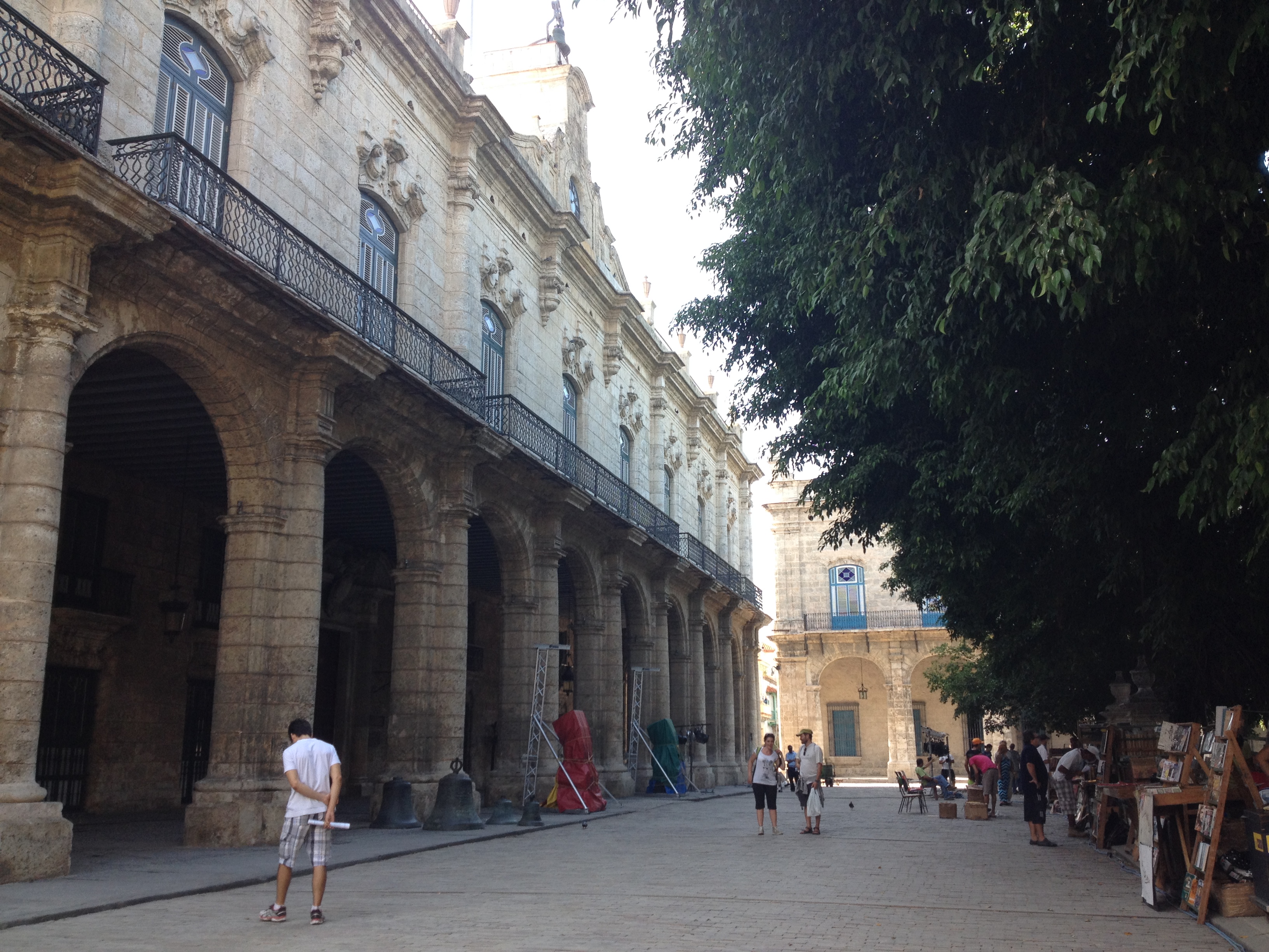 Foi nessa pracinha que ficamos procurando desesperadamente por uma sombra, enquanto aguardávamos a chegada do T1, para prosseguirmos com o passeio. E a próxima parada foi para conhecer o Museu da Revolução, no belíssimo prédio, que foi o Palácio Presidencial até a subida ao poder de Fidel Castro, e pelo qual já vale a visita.